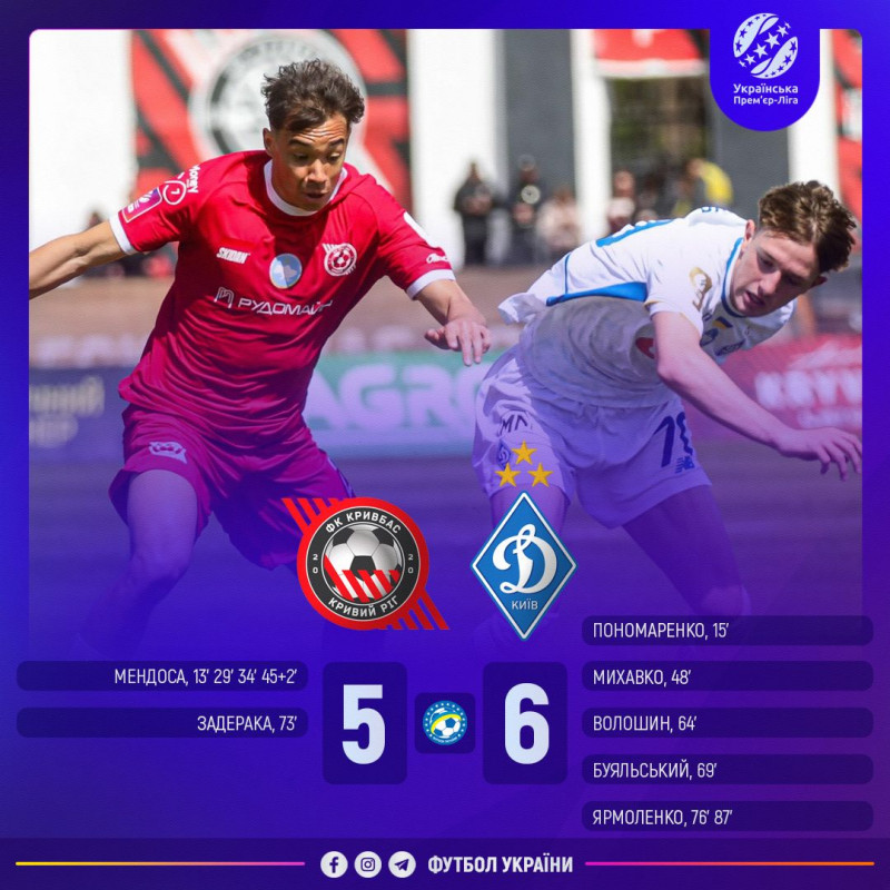26 квітня в Кривому Розі відбувся історичний поєдинок чемпіонату України, який увійде в історію як найрезультативніший матч в історії УПЛ. Київське «Динамо» здобуло перемогу над «Кривбасом» з рахунком 6:5, подарувавши вболівальникам справжнє футбольне шоу.