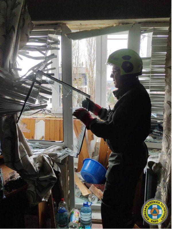 За п’ятьма адресами в Подільському районі, де упали уламки, рятувальники КАРС розпочали демонтаж аварійних конструкцій у постраждалих будівлях. За однією з адрес зняття аварійних конструкцій ускладнене через припарковані біля будинку автомобілі.