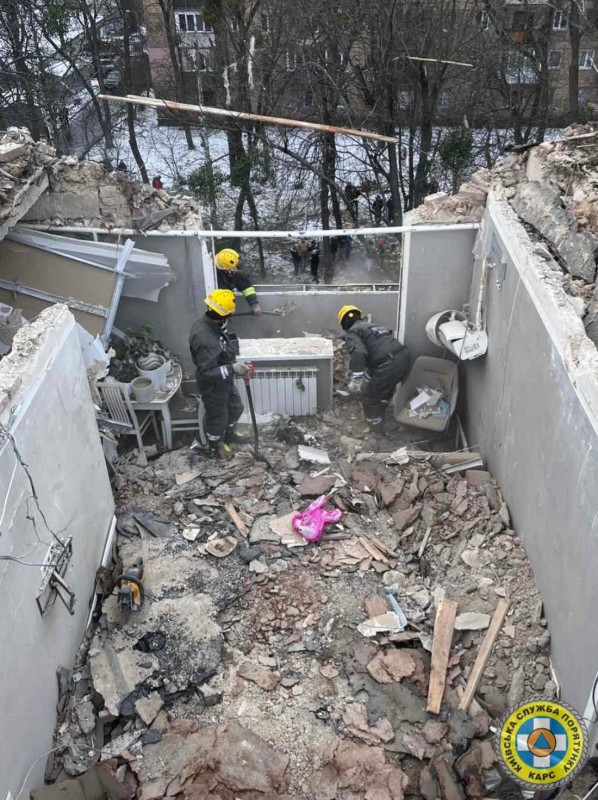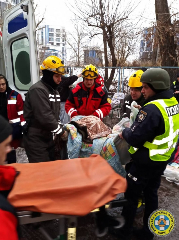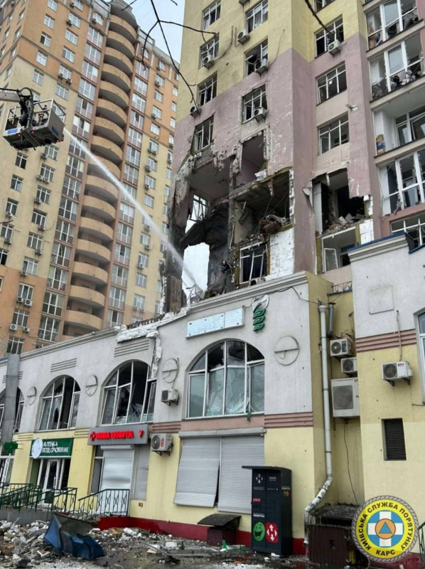У Дніпровському районі, де постраждав багатоквартирний житловий будинок, рятувальники КАРС деблокували двері помешкань для порятунку мешканців, здійснювали пошук загиблих та постраждалих, зараз демонтують аварійні конструкції. Також допомогли рятувальникам ДСНС встановити пункт обігріву.