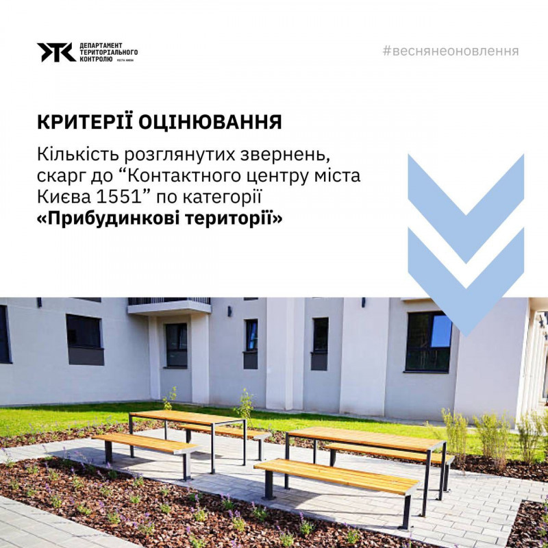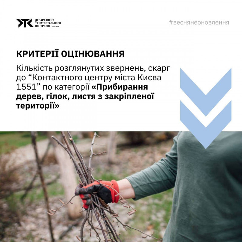 Оцінюватимуть за 15 критеріями. Департамент терконтролю нагадав, що вже декілька сезонів поспіль свідомо тримає фокус на тому, що справді важливо для киян — якісному та оперативному відпрацюванні звернень до Контакт-центру 1551. У Департаменті вважають, що це той показник, який найкраще відображає реальні потреби міста.