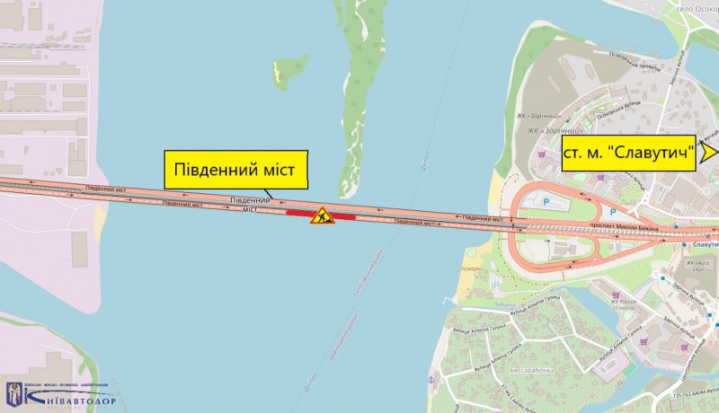 Із 21:00 24 квітня і до 19:00 27 квітня частково обмежуватимуть рух Південним мостом.
