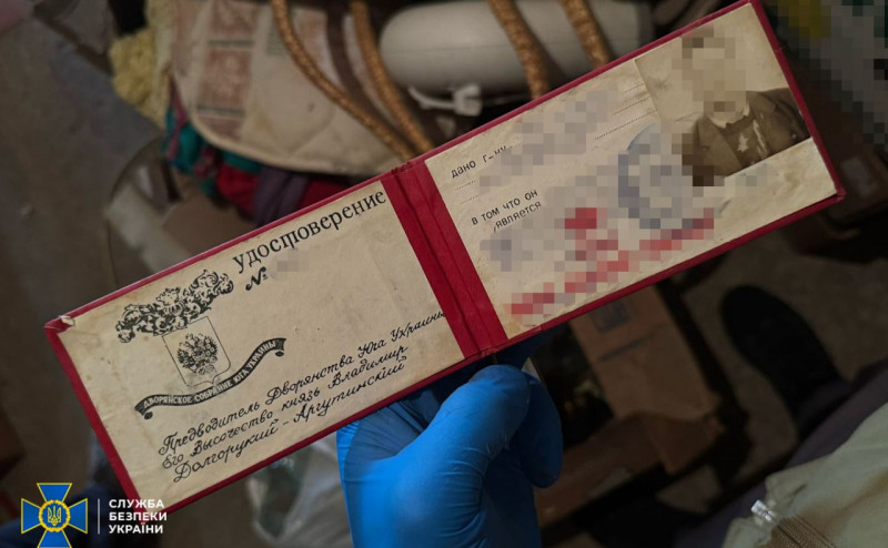 Під час обшуків у нього вилучили саморобні вибухові пристрої, а також посвідчення «Предводителя дворянства півдня України, його високості князя Володимира Долгорукого — Аргутинського».