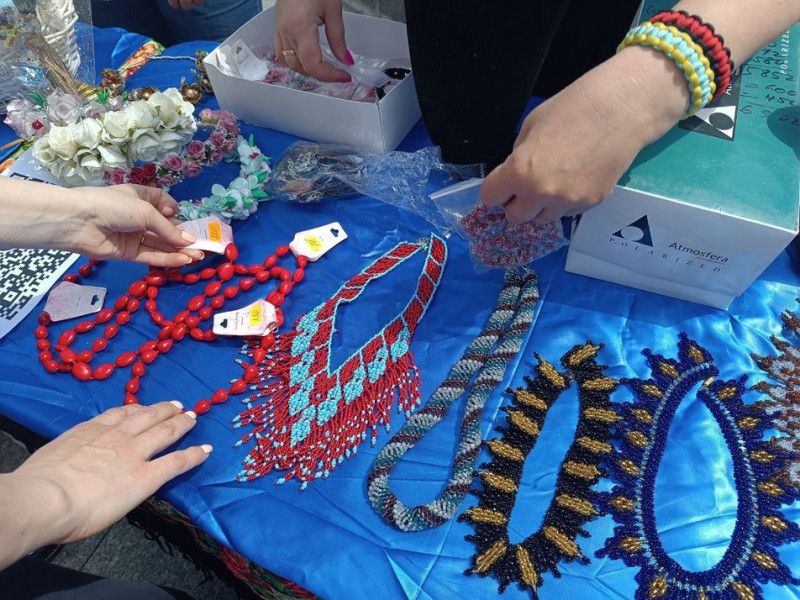 Прикраси з бісеру на благодійному ярмарку, Київ, 23 травня 2024 р. Cуспільне/Анна Самара