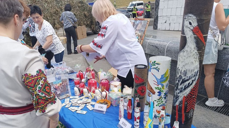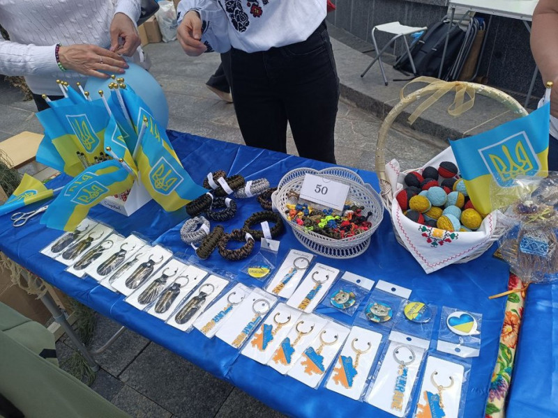 На продаж виставили жіночі прикраси ручної роботи, сувеніри з патріотичною символікою, свічки та розмальовані гільзи від снарядів. Крім того, відвідувачі зможуть придбати браслети із довоєнної сталі "Азовсталі".