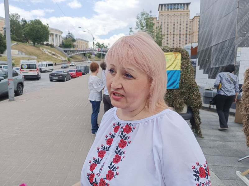 Благодійний ярмарок на підтримку ЗСУ від активістів «Святошинських маскувальних сіточок», Київ, 23 травня 2024 р. Cуспільне/Анна Самара"Сьогоднішню акцію ми присвячуємо нашим хлопцям. Сьогодні — День Героїв, які вже до нас, на жаль, не повернуться. Але пам'ять про них ми маємо завжди шанувати", — розповіла координаторка волонтерської групи "Святошинські маскувальні сіточки" Валентина Галай.