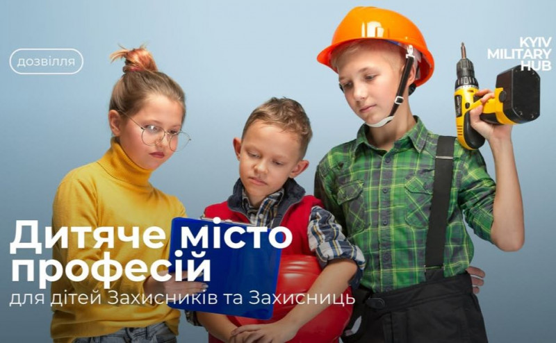 Київ Мілітарі Хаб в рамках співпраці з «KidsWill» запрошує дітей Захисників та Захисниць відвідати дитяче місто професій.