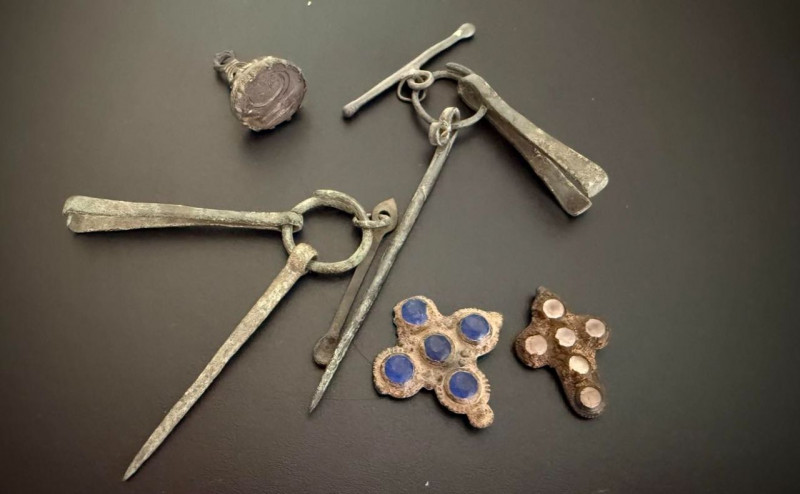 - Два бронзових туалетних набори є зразками предметів побуту салтово-маяцької культури, поширеної колись, зокрема, в басейні річки Сіверський Донець (8-10 століття). Такі косметичні набори складаються з копоушки, пінцета та шпильки.