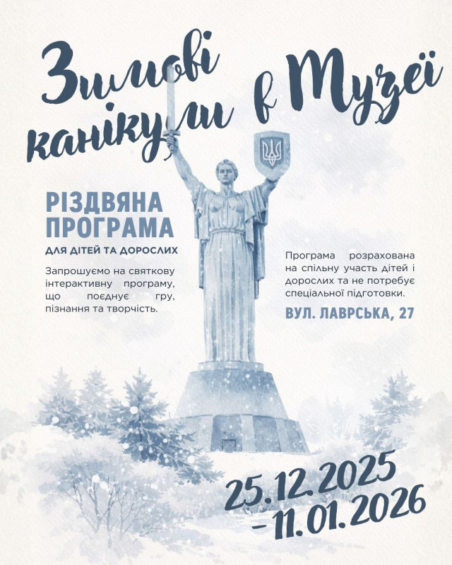 Національний музей історії України ц Другій світовій війні підготував Різдвяну програму на зимові канікули для дітей та дорослих. Зимова програма триватиме з 25 грудня до 11 січня