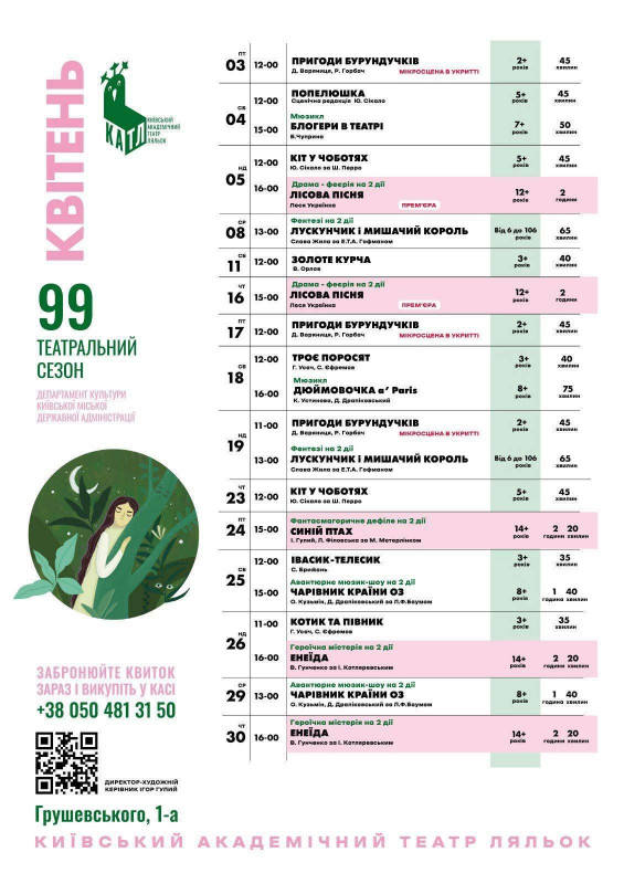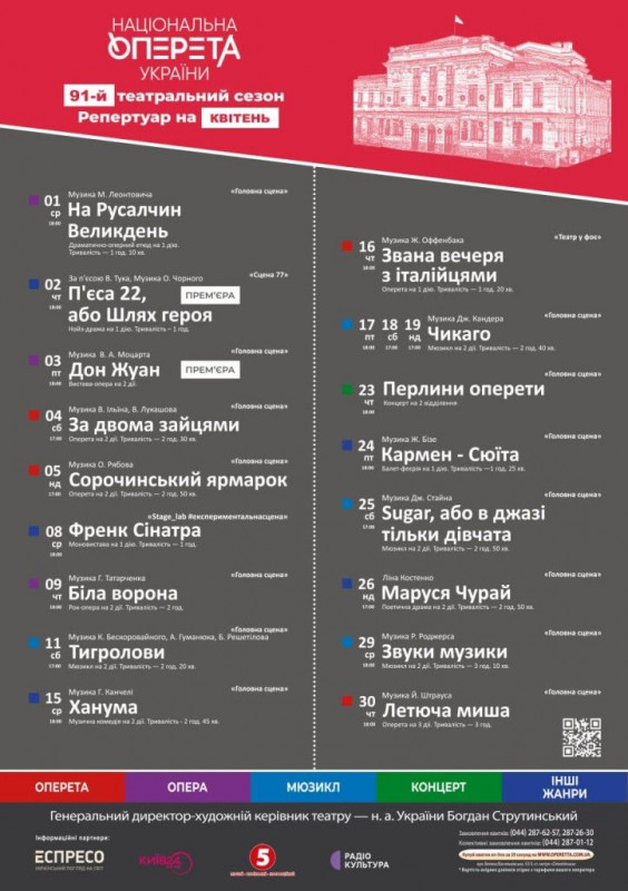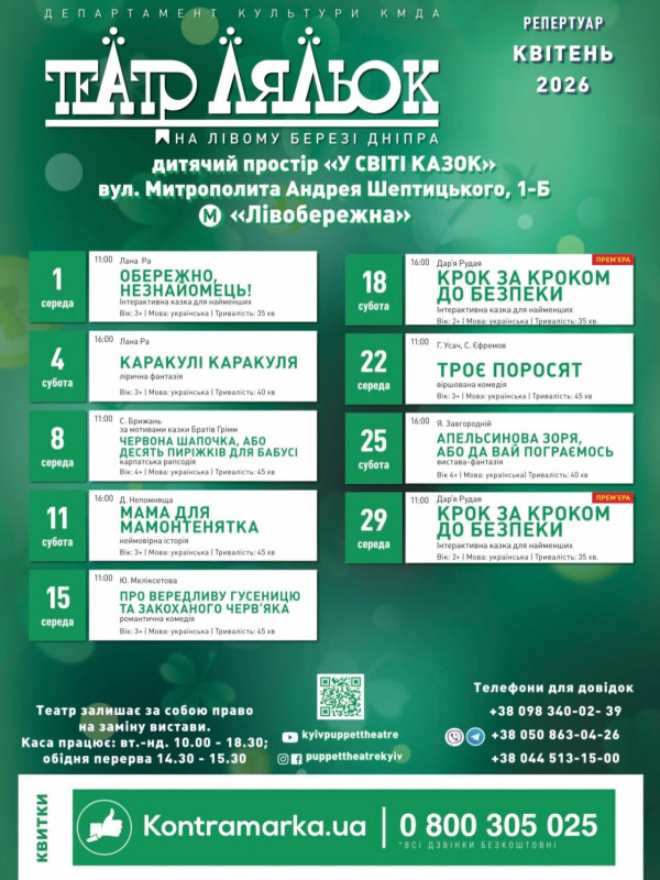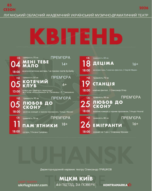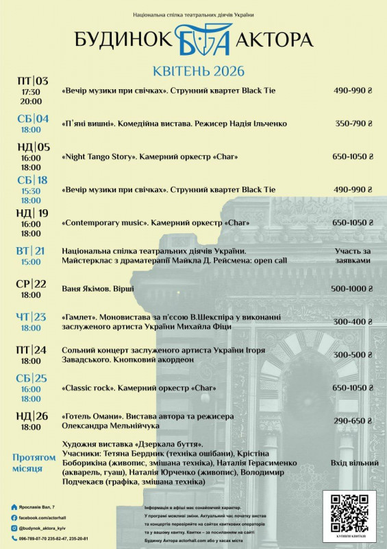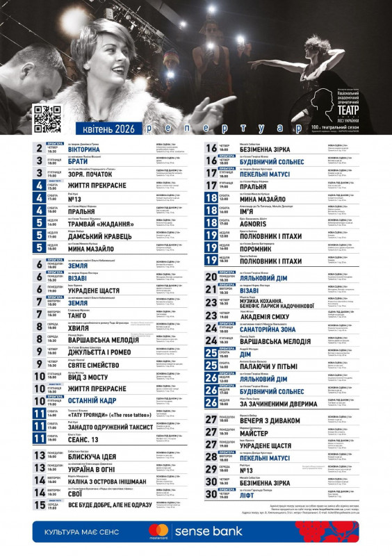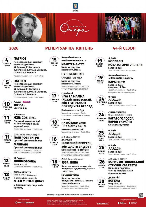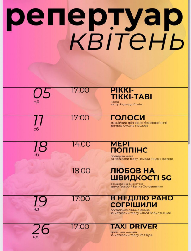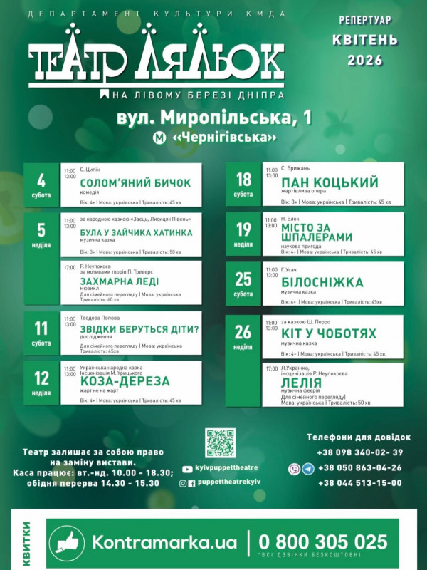 Для вашої зручності ми зібрали афіші столичних закладів із репертуаром на місяць. Обирайте вистави, які вам до вподоби, та підтримуйте київські театри!