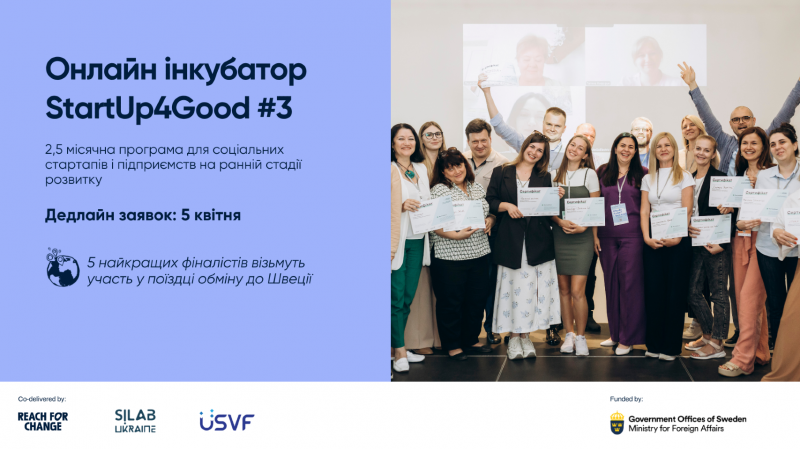 В Україні триває набір на третю хвилю інкубаційної програми StartUp4Good для соціальних стартапів і підприємств на ранній стадії. До участі запрошують команди, які створюють або планують запускати рішення із соціальним чи екологічним впливом.