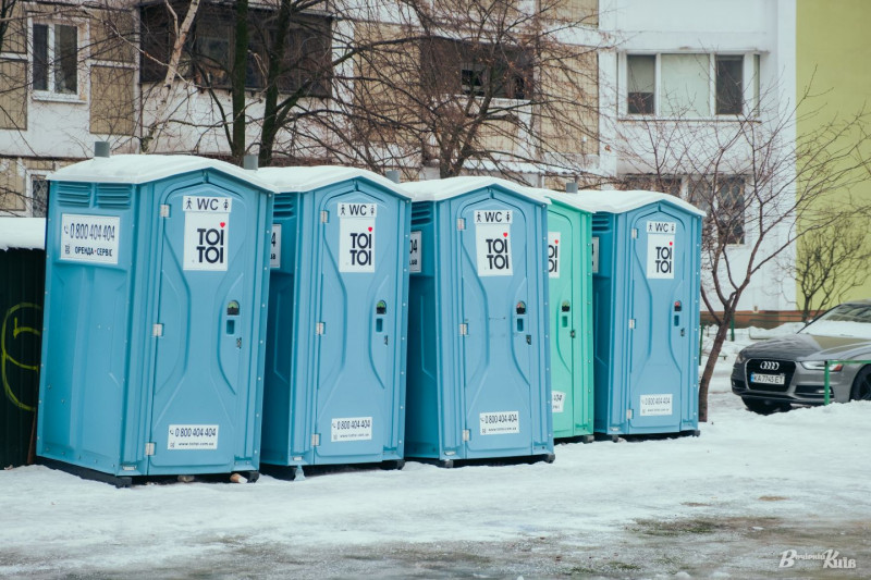 Біотуалети біля наметового містечка на вулиці Лаврухіна, 11.