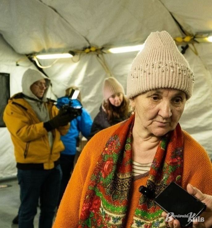 «Сиджу тут, обігріваюся, чаї ганяю. Спілкуюся. Один позитив. У нас один позитив. У нас негатива немає. Знайомимося, спілкуємося. А додому йдемо в холодильну камеру, можна сказати. І там Накриваємо себе трьома ковдрами, шкарпетки, рукавиці, шапки і поруч — котик обігріває. Переспали. встали, не вмиваючись, бо вода дуже, дуже холодна. Ідемо сюди», — каже пані Таміла.
