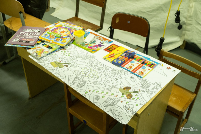 Кілька стільців та стіл, на якому чимало книжок, розмальовок, олівці і фломастери. Це — дитячий куточок, де зазвичай проводять час діти, які прийшли з батьками. Рятувальниці ДСНС розповіли, що куточок дуже популярний у малечі. Вони заспокоюються під час ігор та малювання.