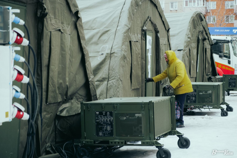 У п’яти школах Деснянського району місто розгорнуло опорні пункти, де люди можуть перебувати у теплі, отримувати їжу, також працює наметове містечко ДСНС, де кияни мають змогу цілодобово проводити час, поки фахівці повернуть тепло у домівки. Журналісти «Вечірнього Києва» побували на двох великих локаціях на Троєщині.