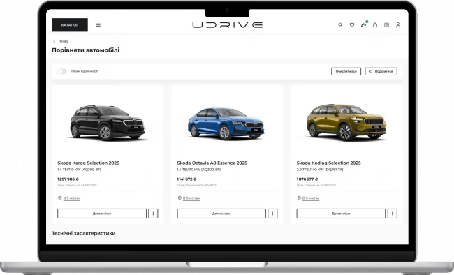 У результаті кількарічної роботи було створено систему, де підготовка документів займає мінімум часу, а видача авто перетворюється на справжній фінальний етап свята покупки. Покупець може скористатися функцією автоматичного порівняння, щоб бачити, чим відрізняються комплектації чи чому змінюється ціна. Це знімає головний бар’єр — необхідність вручну збирати інформацію з десятків сайтів. Також доступна інтеграція з Дія.Підпис, що дозволяє підписувати договори онлайн. Усе, що стосується розрахунків, графіка платежів або узгоджених умов, зберігається у профілі клієнта. Прозорість — ключовий принцип UDRIVE.