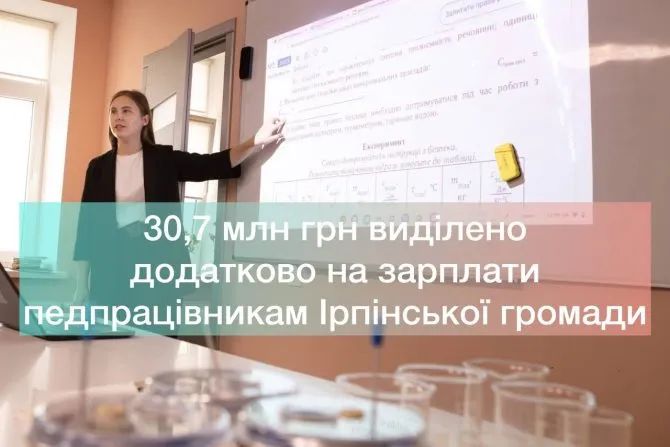 30,7 мільйона гривень додатково виділила Ірпінська міська рада на збільшення зарплат і доплати педагогічним працівникам.