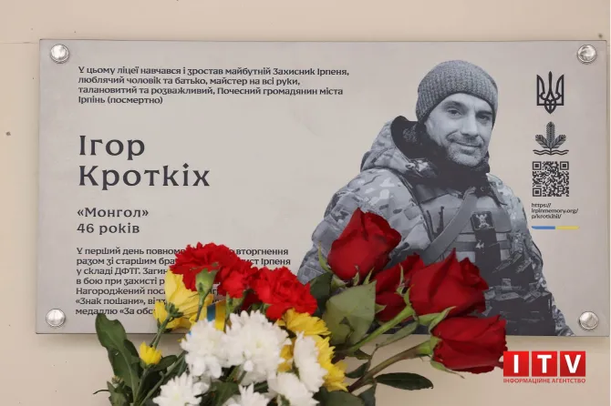 Сьогодні на фасаді ірпінського ліцею №3 відкрили меморіальну дошку на честь Ігоря Кроткіх, який загинув, захищаючи рідне місто від окупантів. Про це повідомив перший заступник Ірпінського міського голови Олександр Пащинський.