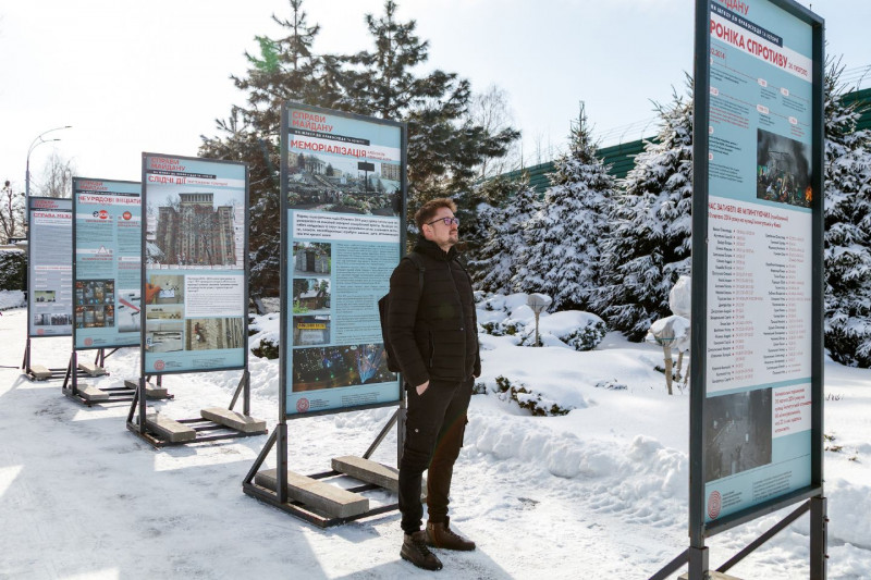 Виставка представлена на території парку-пам’ятки — місці, яке під час Революції Гідності стало одним із символів подій тих років.
