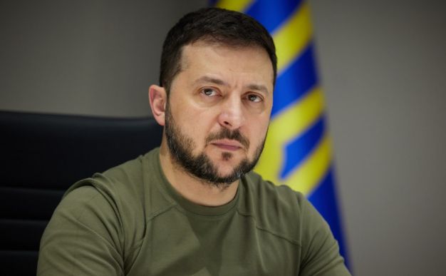 Президент України Володимир Зеленський під час спілкування з журналістами. Фото: ОП