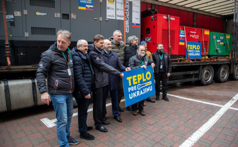 «Від Словаччини до Києва надійшла перша партія гуманітарної допомоги: 16 генераторів різної потужності та 2 комплекти зарядних станцій по 8 кВт — загальною вартістю 166 000 євро. Три найпотужніших генератори (225 кВт, 100 кВт і 63 кВт) передаємо школам у різних районах столиці. У другій половині січня за ініціативи Посольства України в Словацькій Республіці у співпраці з найбільшою словацькою фандрейзинговою платформою Donio та 10 провідними громадськими організаціями Словаччини запустили масштабну кампанію зі збору коштів «Тепло для України».