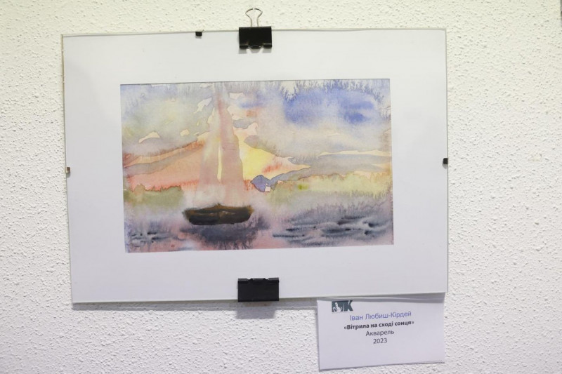 що перша виставка — акварелі «Відродження» Івана Любиша-Кірдея, художника, воєнкора, який знімав Революцію Гідності, анексію Криму, пройшов Іловайськ, а згодом сам опинився по інший бік камери.