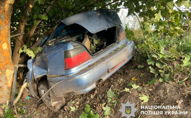 Авто, яке врізалось у дерево. Фото: Нацполіція