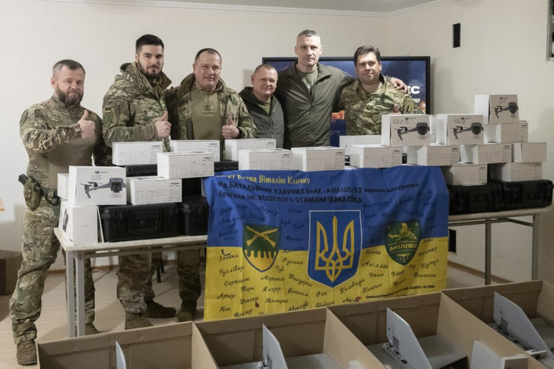"92-й бригаді передав закуплені за кошти бюджету понад 50 БПЛА — зокрема 31 Mavic 3 та 20 Mavic 3T. Також днями бійцям вирушить автомобільна техніка", — зазначив Віталій Кличко. Він додав, що загалом 92-й бригаді місто виділило з бюджету 97 млн грн.