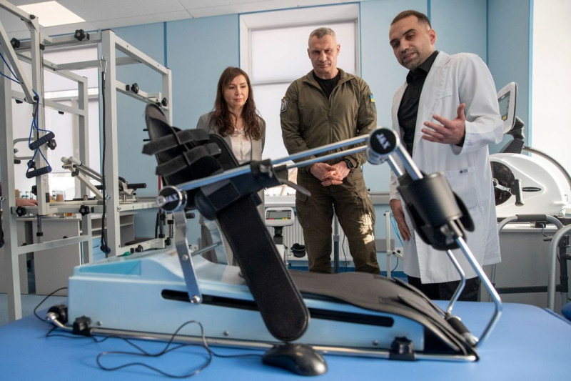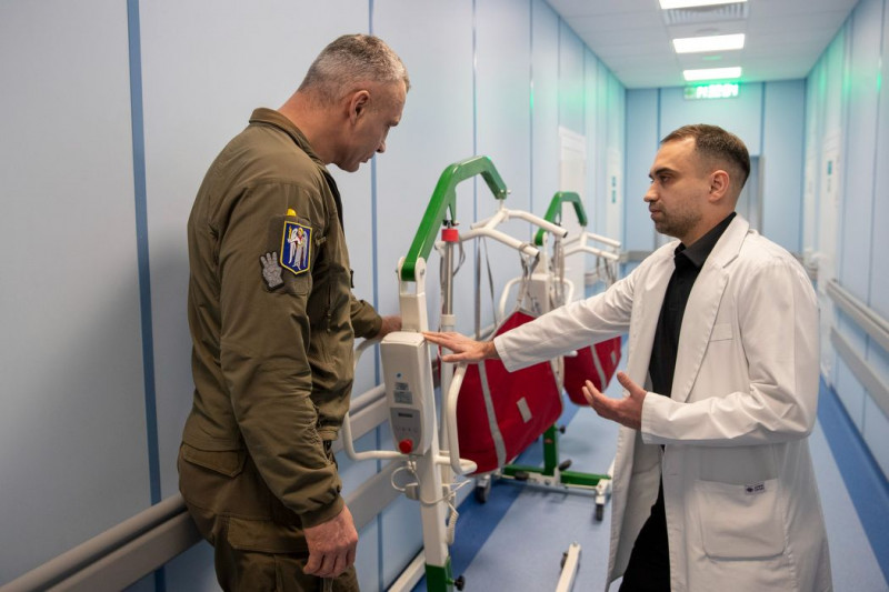 Відділення орієнтоване на пацієнтів, які потребують лікування та реабілітації після інсультів, черепно-мозкових травм та контузій, травм хребта та оперативних втручань, із захворюваннями периферичної нервової системи. У відділенні дві зали реабілітації, які облаштовані спеціалізованими тренажерами та сучасним реабілітаційним обладнанням», — розповів Віталій Кличко.