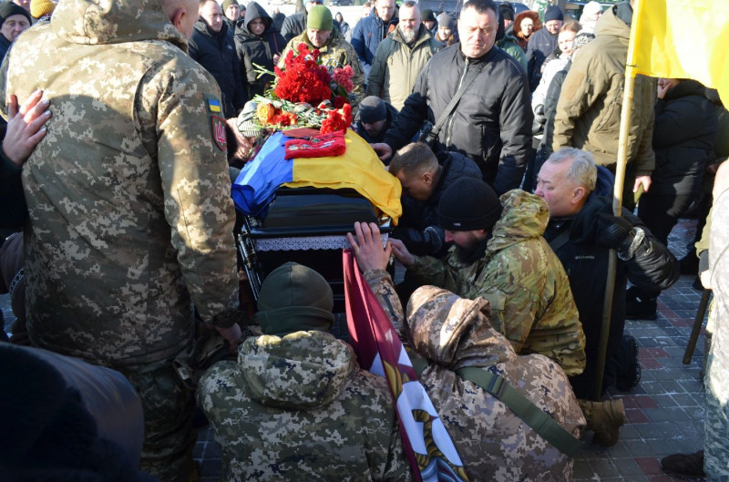 побратими біля труни Максима Волинського під час прощання із Захисником.