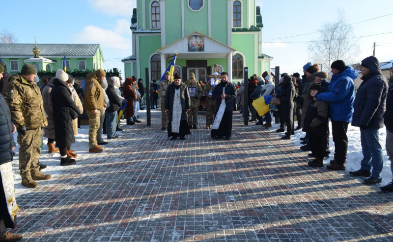 Після відспівування військового у храмі в селі Баришівка на Київщині. Фото: Ветеранський простір, Баришівка, фейсбук