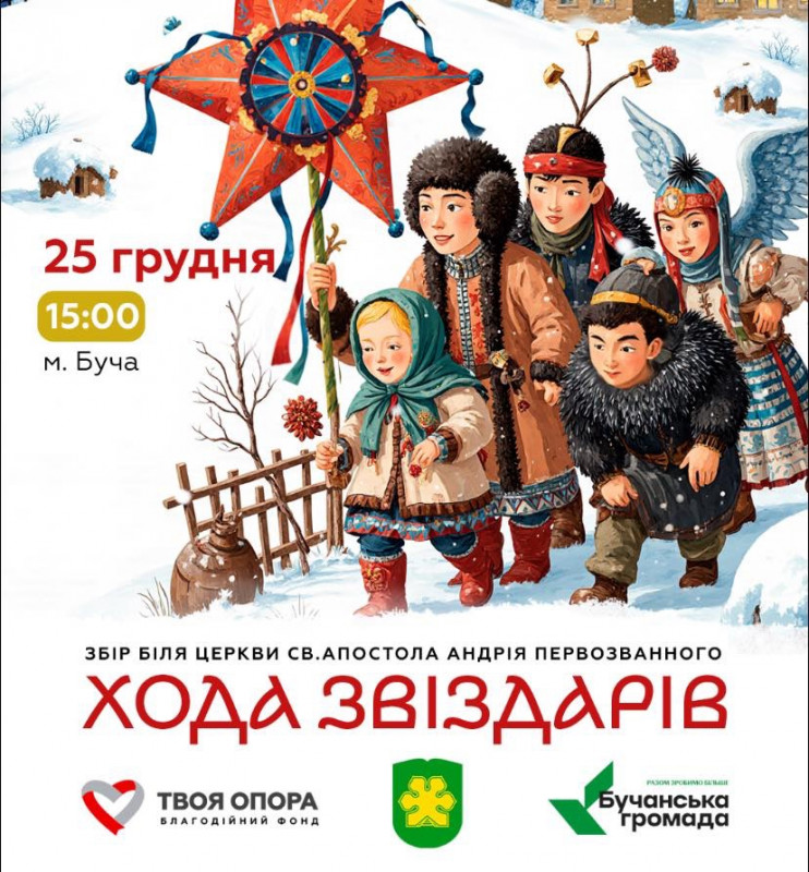25 грудня в Бучі відбудеться нова різдвяна подія, покликана об’єднати громаду та відродити традиції колядування. Мешканців і гостей міста запрошують долучитися до святкової ходи з різдвяними зірками.
