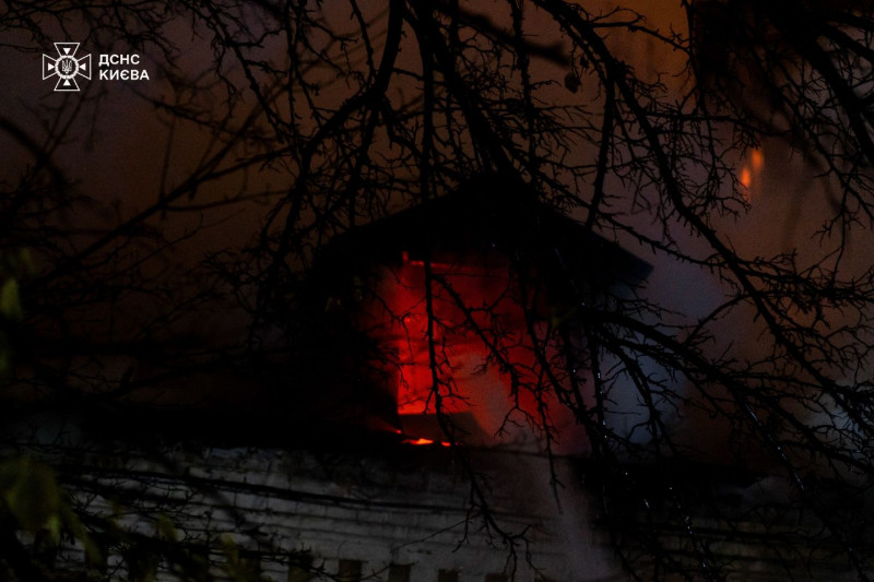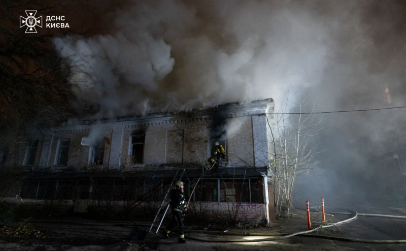Загоряння виникло у відселеній будівлі, з розповсюдженням вогню на покрівлю, повідомляє Головне управління ДСНС у місті Києві.