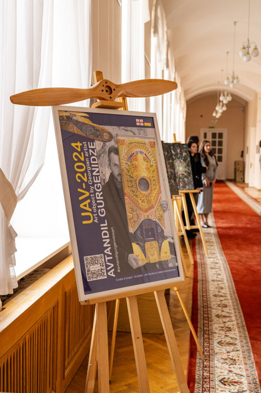 Серед них — грузинський художник Автанділ Гургенідзе, який багато років підтримує Україну своїми мистецькими проєктами. Під час війни він створив унікальні роботи: розпис бойового дрона та мурал із HPL панелей «Ukraine on My Mind» (у співпраці з українською компанією Budzirka) на території Тренінгового центру прокурорів України. На події представили частину серії його картин, присвячених Україні.