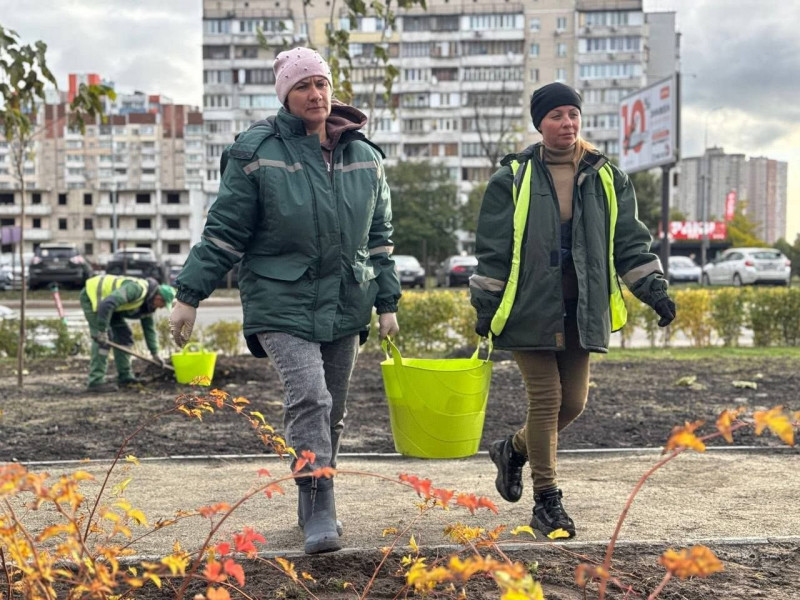 На проспекті Петра Григоренка в мінісквері посадили вічнозелені туї. Це вже завершальний етап створення екологічного простору. Тепер у сквері 85 дерев, майже 2 тис. кущів, понад 700 декоративних злакових трав та близько 1,2 тис. багаторічних квітів. Простір створено КП УЗН Дарницького району.
