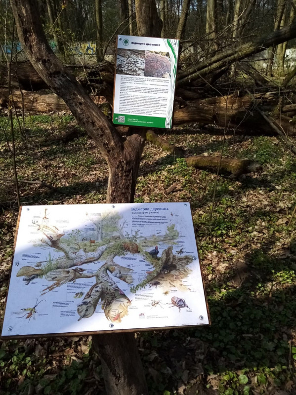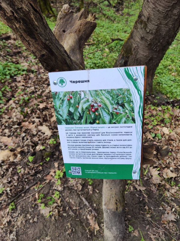 «Наприклад, у 2025 році ми розпочали встановлення нових інформаційних табличок на стежці, котра з’єднує вулицю Виставкову та лікарню Феофанія, що проходить близько до території Виставкового центру. Там відвідувачі НПП „Голосіївський“ зможуть дізнатися про сосни та модрини серед дубово-грабового лісу, про ділянки буку („Голосіївські Карпати“), вікові дуби (дуб Слави), старі черешні, що таке відмерла деревина та багато іншого», — розповіли науковці парку.