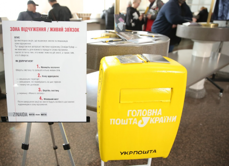 Листівки можна залишити у спеціальній скриньці «Живого зв’язку», яка протягом місяця наповнюватиметься словами підтримки, вдячності та присутності.