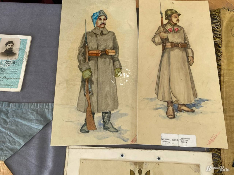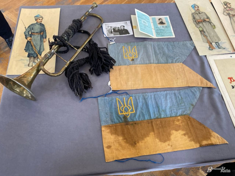 Окрему увагу на показі привернули полкова сурма, уніформи та рідкісні ілюстрації Миколи Битинського, які зберегли побут і символіку українського війська під час визвольної боротьби.