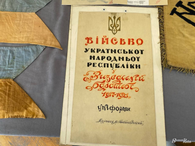 Серед них — прапори військових підрозділів, речі з автомобіля Симона Петлюри, паспорт Української Народної Республіки, а також малюнки й військові документи того часу.