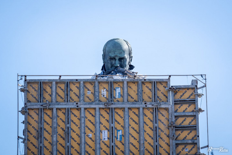 Втім вже чотири роки монумент у спеціальній захисній конструкції. Росія обстрілює столицю ракетами та шахедами, цілиться у будинки киян та цивільні об’єкти і пам’ятки та пам’ятники — також.