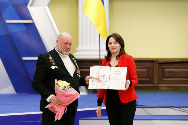 До Дня вшанування учасників бойових дій на території інших держав у Колонному залі КМДА заступниця голови КМДА Марина Хонда відзначила подяками та нагрудними знаками Київського міського голови людей, чиї життєві шляхи пройшли через війну.