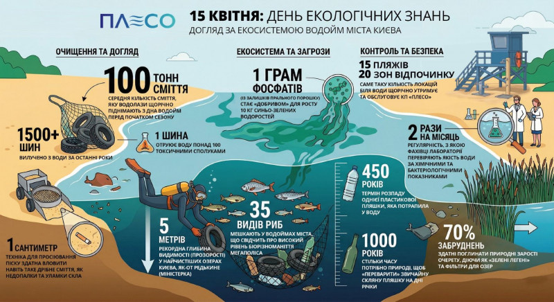 У КП «Плесо» зазначили, що кожен наш крок біля води — це внесок у стан довкілля. Й фахівці КП «Плесо» діляться важливою статистикою екологічного стану та особливостями догляду за водоймами Києва.