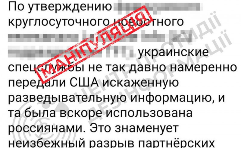 У мережі поширюється неправдиве твердження про нібито передачу Україною Сполученим Штатам «спотвореної розвідувальної інформації», яка згодом була використана росією.