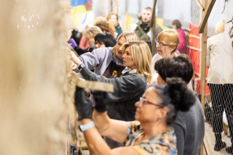З нагоди Міжнародного дня волонтера перша леді України Олена Зеленська відвідала центр плетіння маскувальних сіток громадської організації «Берегині з Ірпеня». Про це повідомили в Офісі Президента.