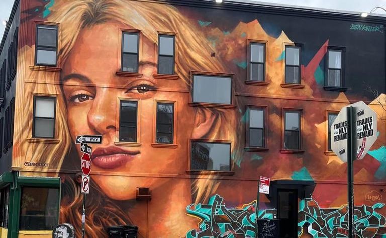 Мурал установили кілька тижнів тому на житловому будинку в районі Бушвік. Його створив американський стритартист Бен Келлер, відомий меморіальними проєктами, присвяченими жертвам насильницьких злочинів.