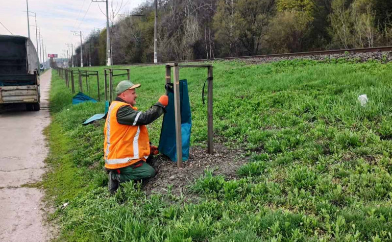 Цьогоріч у Голосіївському районі зокрема заплановано встановити 1850 мішків для такої ж кількості дерев.