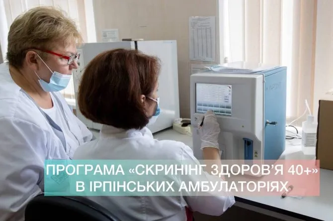 Скористатися національною програмою «Скринінг здоров’я 40+» можна буде у всіх амбулаторіях Ірпінської громади. Про це повідомила заступниця Ірпінського міського голови Юлія Осінська.