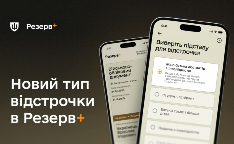 Міністерство оборони продовжує збільшувати кількість відстрочок від мобілізації, які можна оформити онлайн через застосунок «Резерв+». Відтепер подати запит можуть військовозобов’язані, у яких батько або мати має інвалідність I чи II групи.