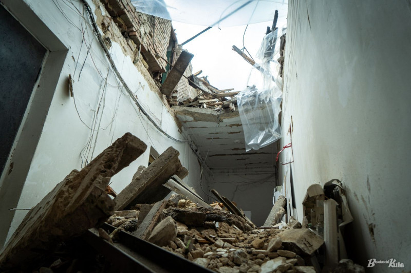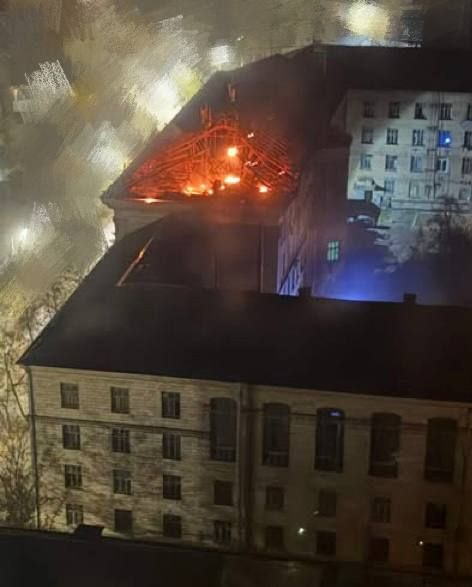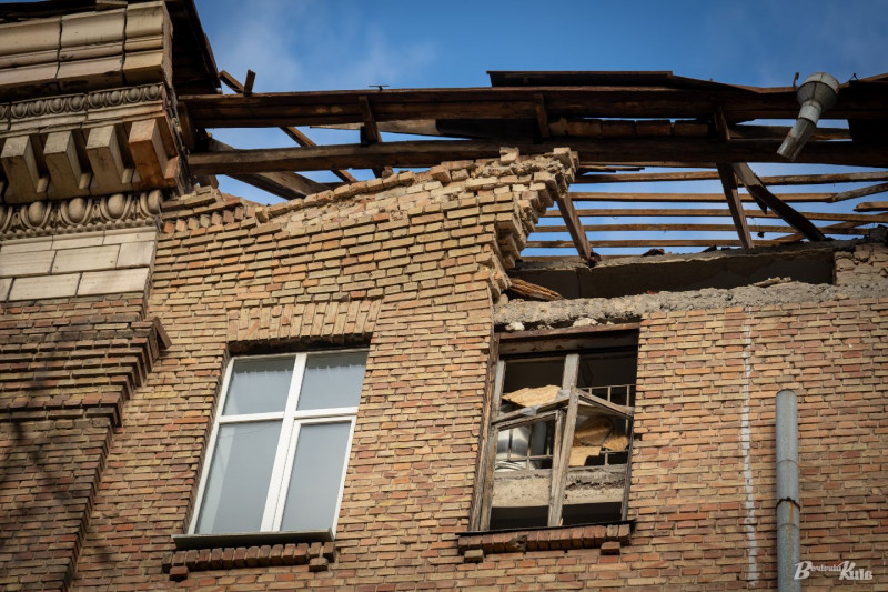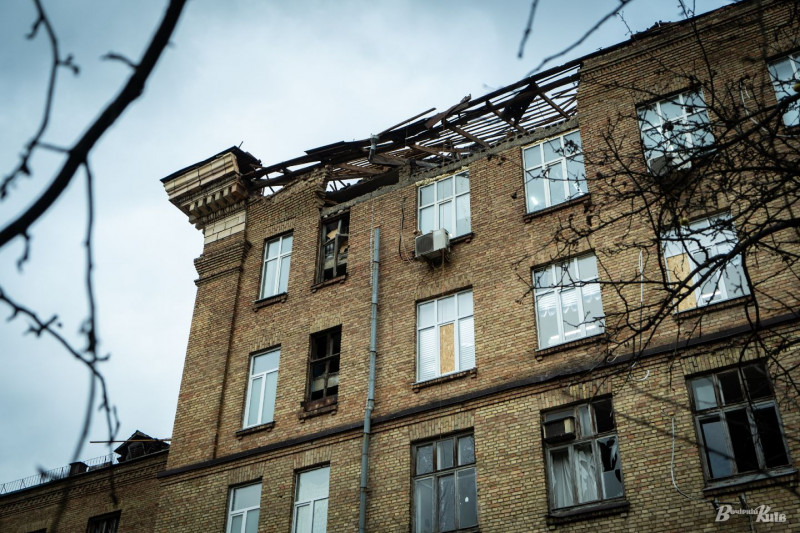 Удар спричинив обвал частини даху в коридорі п’ятого поверху та вибив вікна в десятках художніх майстерень.