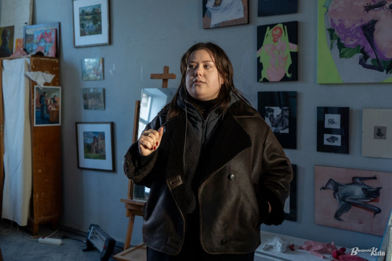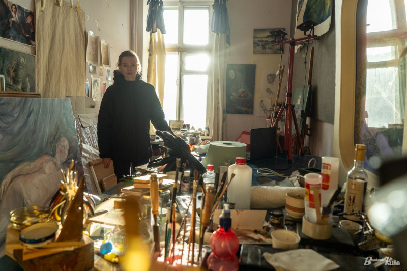 «Я прийшла в інститут заради укриття, тому що сильно бахкало. Зайшла у загальне бомбосховище, побачила, що там дуже багато людей. Тому вирішила піти до укриття біля своєї майстерні на третій поверх інституту», — розповідає мисткиня.