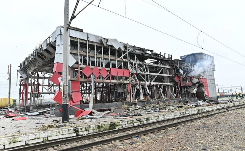 Навколо зруйнованого обстрілом вокзалу та у депо залізничники зараз наводять лад.